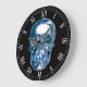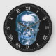 Blue Chrome Skull Round Roman Numerals Clock