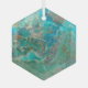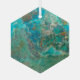 Hexagonal shaped and beveled, glass ornament that features a photo image of the beautiful, turquoise blue colour of Chrysocolla mineral stone. A lovely, hanging jewel for your holiday decor!
