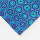 Quilt-inspired arrangement of a circular pattern with loads of different blue colours. Customisable with a name in white that stands out from the blue.
