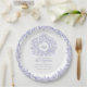 blue circle leaf art monogram wedding paper plate