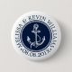 Cool modern wedding text template with dark blue circle and white vintage nautical boat anchor.