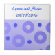 A modern design featuring a shaded blue background. Large open blue circles with smaller royal blue dots. Customize with names and wedding date as desired.
