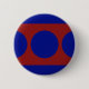 This bold geometric pattern features a blue circle in the centre and two blue half circles on the edges of a red background.