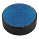 Blue circular product with a polka dot pattern hockey puck