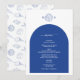 A simple blue clam monogram coastal wedding design. A seaside beach design that uses a sketch of a clam and seashells to create an elegant classic monogram. A charming blue and white coastal beach design with rustic strokes and classy script typography. An elegant seaside clam beach themed wedding menu card design with modern elements. Matching wedding stationery items and other wedding invite formats are also available.