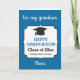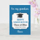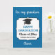 This is a personalized grandson graduation card designed in a blue. You can easily personalize with the class year, name and the student's school. lnside this graduation card, it reads "Congratulations, you did it! All of your hard work and determination paid off. You should be proud of