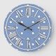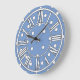 Soft blue clock with Roman Numbers and white dots. Hang it in the library, den, beach house, or office. This clock would make a unique housewarming or boatwarming (or houseboat warming) gift. Available in two sizes of round clock, or a square clock. Copyright Scarebaby Design.