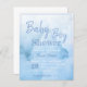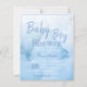 An elegant and cute budget Baby Boy Baby Shower Invitation. On a blue gradient fluffy cloud background, the blue typography text reads Baby Boy Shower. Personalize by adding your full event and contact details.