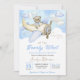Blue Clouds Flying Teddy Bear Pilot Baby Shower Invitation