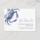 Designed to coordinate with my coastal wedding collection, this elegant seaside guest details card features a top border of my watercolor crab in shades of blue above your wedding website details in a small 3.5 x 2 size . Add your custom text using the fields provided and use the Customise function to adjust fonts, sizes and spacing. To see matching designs by Victoria (Rigali) Grigaliunas visit DoTellABelle Invites on Zazzle