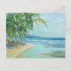 "Blue Coastal Lagoon" by Suzanne Wilkins. Features a serene beach with tropical trees.