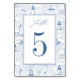 Blue Coastal Toile Lighthouse Wedding Table Number