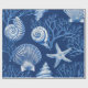 Wrapping Paper - Elegant blue and white coastal toile pattern with detailed coral, seashells, and starfish illustrations. Ideal for beach lovers, coastal decor fans, and those who enjoy classic ocean-inspired designs.