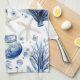 Kitchen Towel - Elegant blue and white coastal toile pattern with detailed coral, seashells, and starfish illustrations. Ideal for beach lovers, coastal decor fans, and those who enjoy classic ocean-inspired designs.