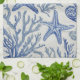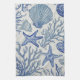 Blue Coastal Toile Seashell Coral Pattern Tea Towel