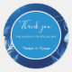 Elevate your coastal celebration with our customisable round sticker, a perfect addition to your special day. Inspired by the soothing blue hues of the ocean and the serene coastal vibes, this thank you label sets the tone for an unforgettable experience. Adorned with elegant seashells and marine animal motifs, along with vibrant generative artwork inspired by the coast, it adds a touch of sophistication to any packaging. Personalise with your monogram or name and wedding thank you text for a truly unique touch.