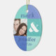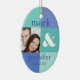 Fun ornament with a modern blue colour block design. Add your own photo and customise the text with the bride and groom's names and wedding date or whatever you like. Perfect keepsake for a newlywed's first Christmas. PinkInkArt original!