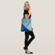 A contemporary geometric pattern, this fashion forward shoulder bag has angled colour block with colourful blue print. Personalise with monogram for a custom tote that makes a wonderful gift or a nice gift to yourself.