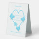 Wedding table number blue coloured butterfly heart design. Customise this wedding table number with your wedding details. Should you require any help with customising then contact us through the link on this page. Blue coloured butterfly heart personalised wedding table number