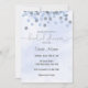 Bridal shower invitation with blue confetti design and light blue watercolor background.