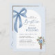 Blue Coquette Bow Floral Cross Boy Baptism Photo Invitation