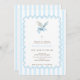 A sweet baptism invitation design with a watercolor dove, scalloped border, and soft blue stripes. Perfect for celebrating your baby boy’s baptism or christening with family and friends. Customisable details included.