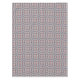 This mid-century modern design features a blue and coral geometric pattern.