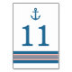 Elegant and classic Nautical Anchor Table Card with a simple boat anchor and an array of stripes in dark navy blue and coral. This nautical beach themed wedding table number card can be easily customised with your wedding details. For more customisation options, click on the Customise It button.