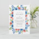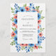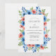 A vibrant watercolor design bursts with coral blossoms and deep blue blooms, intertwined with lush green foliage. This artistic rendering creates a lively and enchanting atmosphere.