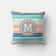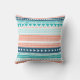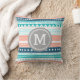 Chic and modern teal turquoise aqua blue, peach orange pink, grey, navy blue and white tribal pattern custom monogram decorative throw pillow. Fully customisable, add your own initial for a truly unique home decor item.