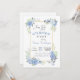 This elegant invitation features soft blue flowers and foliage at the corners, against a crisp white background. Perfect for any age. (<a href='https://www.freepik.com/free-vector/set-of-nice-wedding-invitations_1719778.htm'>Designed by Freepik</a>). <br/><br/>The card is easy to customise with your wording, font, font colour and choice of six paper types.<br/><br/>Not exactly what you're looking for? All our products can be custom designed to meet your needs at no extra charge.<br/><br/>Simply contact us at askcottonlamb@gmail.com<br/><br/>Coordinating products available: Blue Flowers Thank You<br/>Blue flowers Stickers