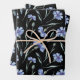 Blue Cornflower Pattern Black Background Wrapping Paper Sheet