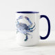 Start your day with a personalised beach-themed coffee mug, featuring a stunning crab design in ocean blue and navy blue. This mug showcases a replica of my original watercolor art, bringing a touch of coastal style to your morning routine.