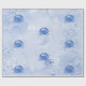 Watercolors in shades of blue form an artistic watery background for the blue crab illustration.