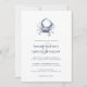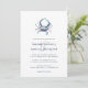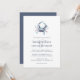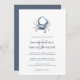 Coastal chic wedding invitation features a watercolor blue crab illustration at the top in faded harbour blue, with your wedding details beneath in classic navy blue. Perfect for beach, summer, or nautical weddings, especially those set in the blue crab regions of the mid Atlantic, these coastal style wedding invitations reverse to solid harbour blue.