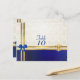 Easily personalise this traditional wedding style dark navy blue and cream vintage damask pattern with gold coloured ribbon, fleur de lys and bow table number for your special day.