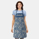 Blue Cream Floral Botanical Custom Name Boho Bold Apron