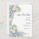 Blue Cream Florals Wedding Save The Date QR Code Invitation