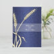 Blue cream wedding wheat flower invitation