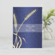 Blue cream wedding wheat flower invitation