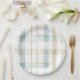 Blue Cream White Plaid Stripes Birthday Paper Plate