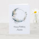 Birthday card with a mystical illustration. A dark blue crescent moon with a elegant thin circle outline and white flower blossoms along its edges.