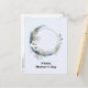 Mother's Day postcard with a mystical illustration. A dark blue crescent moon with a elegant thin circle outline and white flower blossoms along its edges