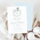 Experience timeless sophistication with this elegant vintage-themed baby boy shower invitation, featuring a charming stork carrying baby boy in a cute crest and baby blue gingham pattern at the back. Perfect for elegant classic baby boy celebrations.
