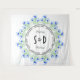 A wedding backdrop with images of beautiful blue crocus flowers. The background, image and text can be personalised. Original artwork by W.B.