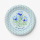 Paper plates with blue crocus flowers. The background, images and text can be personalised. Original artwork by W.B.