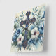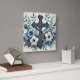 This stunning square wall clock features a richly detailed blue and gold ornate cross at its heart, surrounded by a vibrant array of white hibiscus and blue flowers, intertwined with elegant green foliage. The artistic design creates a serene and spiritually uplifting ambiance, perfect for any sacred space.