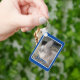 Take a picture of your cherished house rabbit with you wherever you go with this blue trim photo keychain.