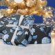 Blue Custom Colour Background Large Floral Toile Wrapping Paper