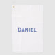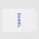 Blue custom name on white golf towel